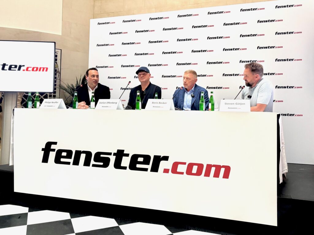 Auftakt der Werbekampagne „Gute Fenster – gute Nachbarschaft“ mit Boris Becker, Lilian de Monteiro, Stefan Effenberg und CEO Philipp Neuffer für Europas größten Online-Player „fenster.com“ bei der Pressekonferenz im Hotel Adlon in Berlin.